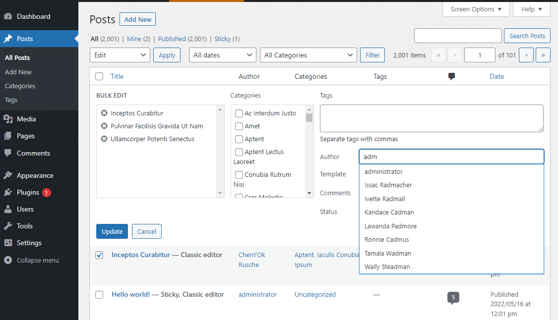 Consulta estándar de WordPress para encontrar autores: